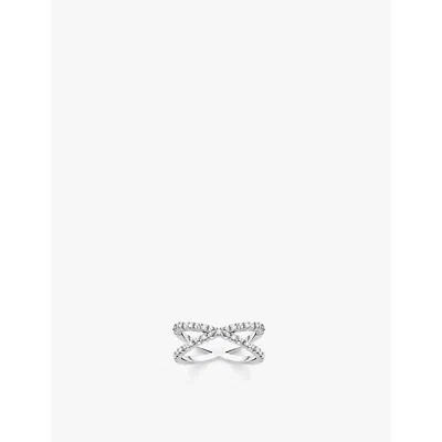 Womens Crossover Dots Sterling-silver And Zirconia Ring In 925 Silver & Cz