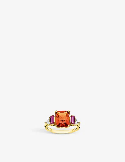 Magic Stones 18ct Yellow Gold-plated Sterling-silver And Zirconia Cocktail Ring In Orange
