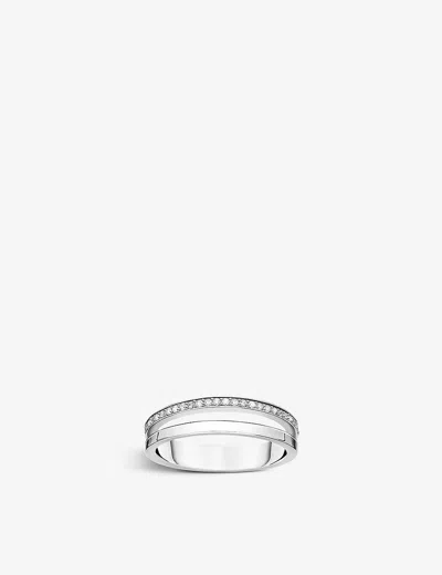 Womens Sterling-silver And Zirconia Band Ring In 925 Silver & Cz