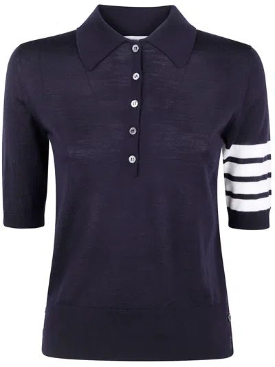 Relaxed Fit Polo With 4 Bars In Fine Merino Wool Clothing In Blue