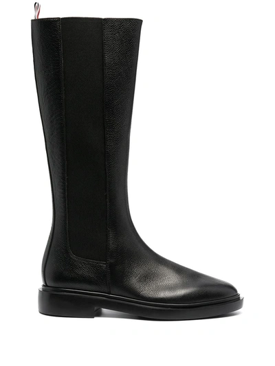 4-bar Stripes Knee-high Chelsea Boots In Grained Leather In Black