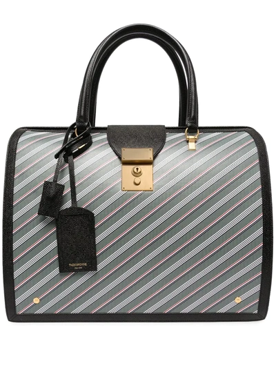 Striped Top Handle Shoulder Strap Tote Bag In Black