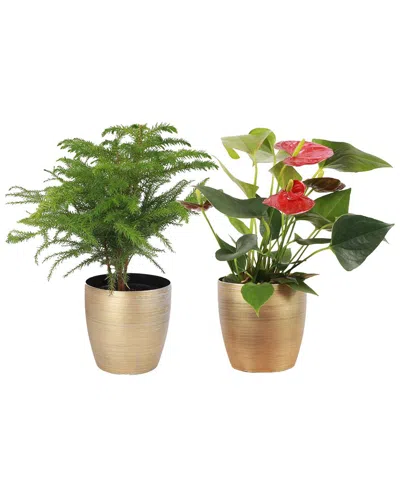 Live Festive Houseplant Bundle In Gold Holiday Pots