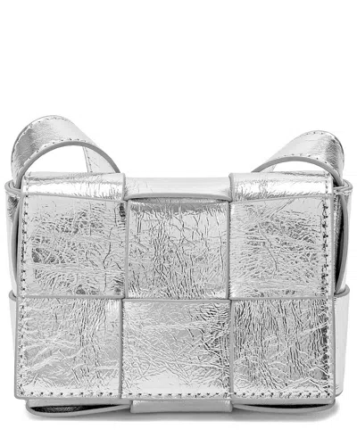 Mini Woven Metallic Leather Crossbody In Silver