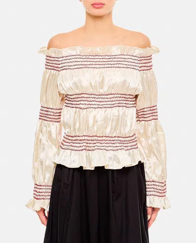 Ruffled Smocked Top In Neutral