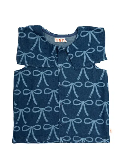 Bow-print Sleeveless Shirt In Blue