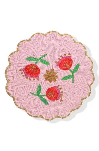 The Peony Sunset Beaded Placemat In Pink