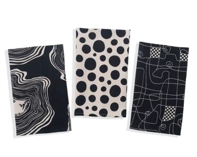 Monochrome Abstract Cotton Kitchen Towel Set In Black