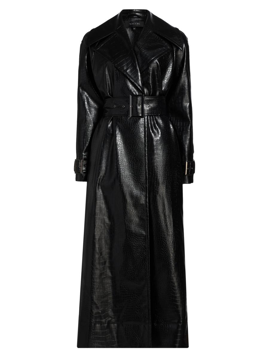 Women's Chloe Croc-embossed Faux Leather Trench Coat In Black