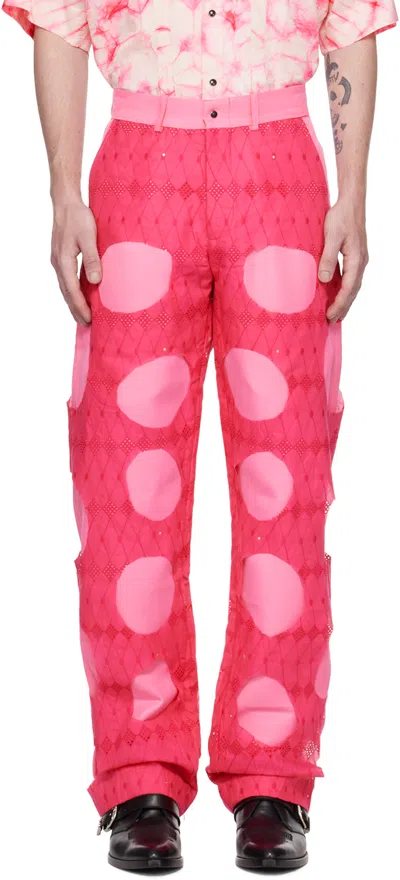 Pink Lace Cutout Trousers In Hot Pink