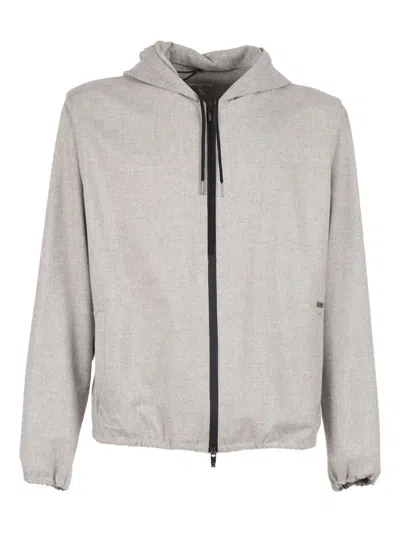 Lightweight Hooded Jacket With Textured Finish In Gray