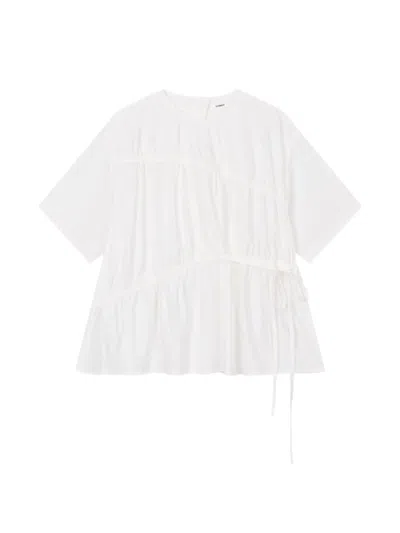 Shirred Tie-fastening Blouse In White