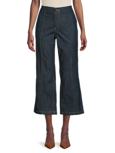 Women's Contrast Topstitch High-rise Cropped Jeans In Blue