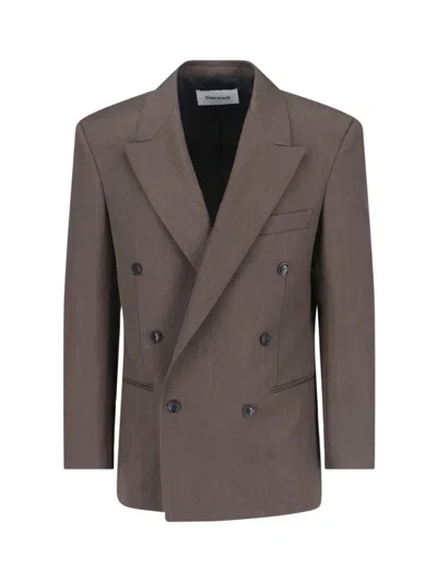 Taupe Melange Wool Double-breasted Tailored Blazer In Brown