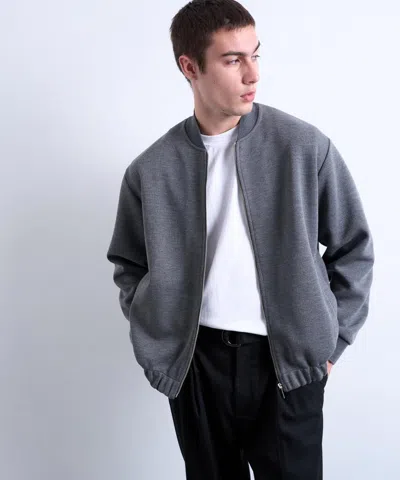 Mens Grey Smart Knitted Bomber Jacket In Gray