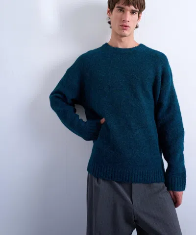 Mens Dark Blue Loose Knit Crew Jumper