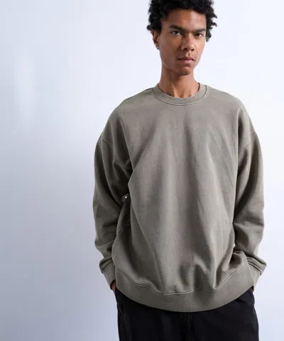 Mens Khaki Heavyweight Oversized Fit Zip Sweater In Gray