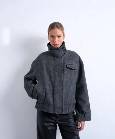 Wool Blend Bomber Jacket With Tab Detail In Gray