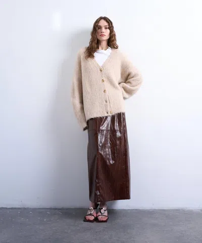 Women's Beige Knitted Premium Alpaca Cardigan In Multi
