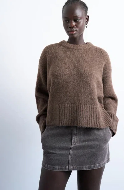 Fluffy Crewneck Sweater In Brown