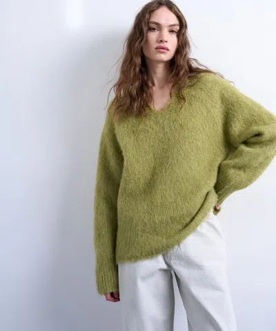 Knit Premium Alpaca V Neck Sweater In Green