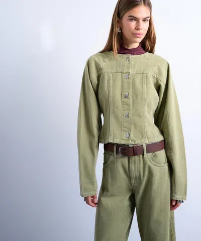 Denim Cinch Shirt With Ovoid Sleeves In Green