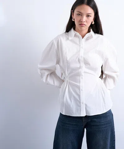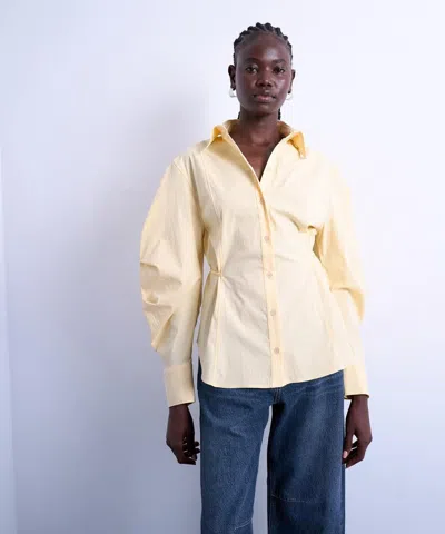 Tie Back Waist Long Sleeve Shirt In Yellow