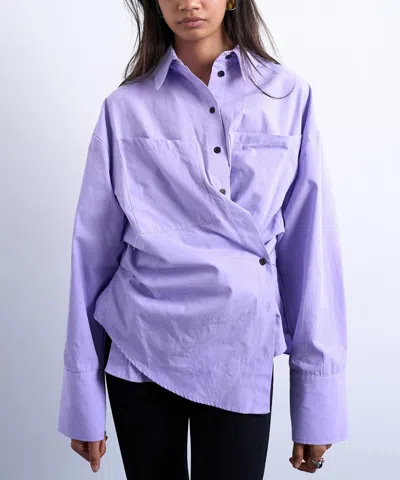 Asymmetric Placket Waisted Long Sleeve Shirt In Purple