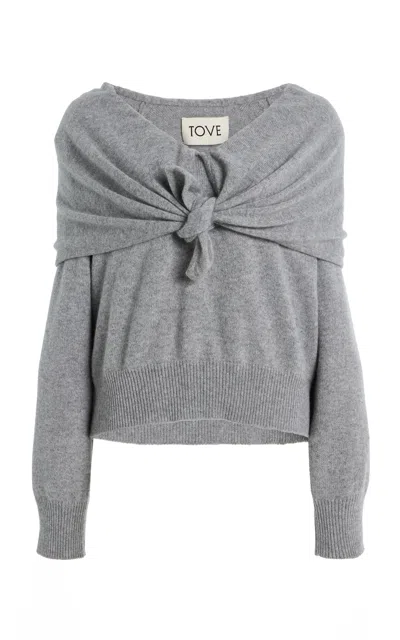 Malia Cashmere Tie-neck Sweater In Gray