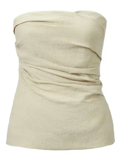 Petra One-shoulder Open-back Gathered Linen Top In White