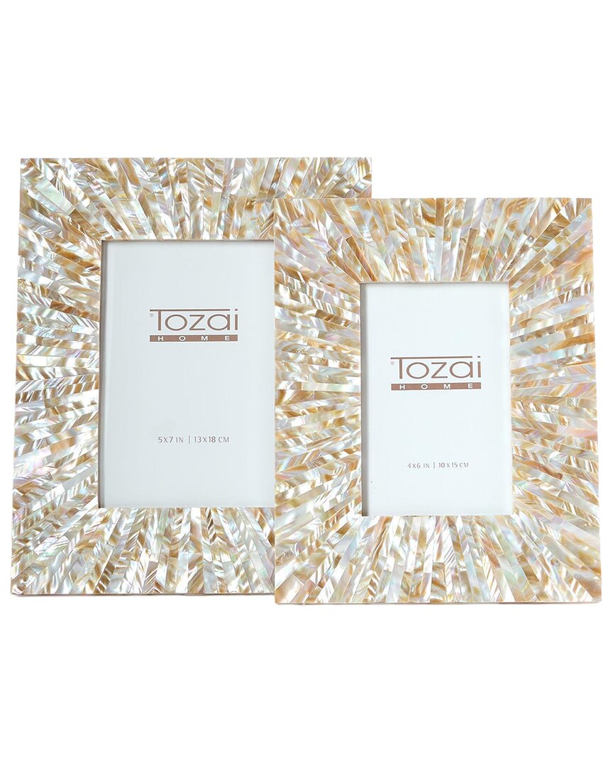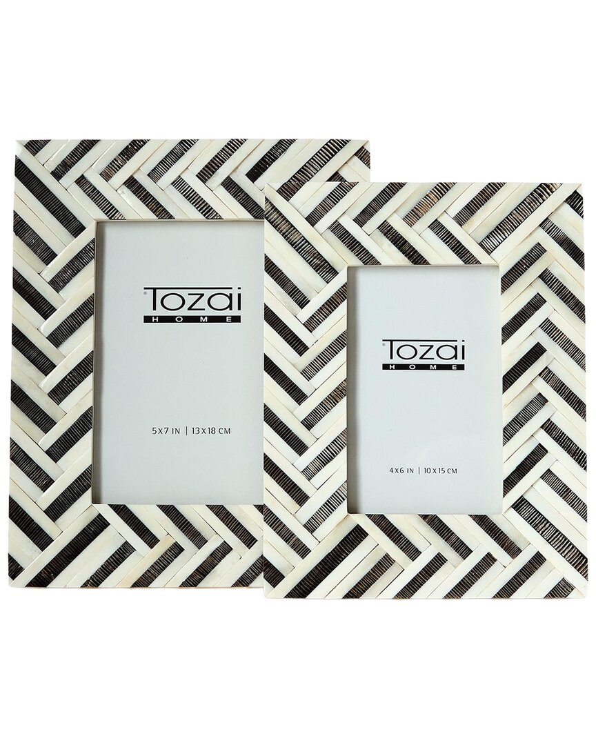 Two's Company Set Of 2 Natural Horn Photo Frames In Brown