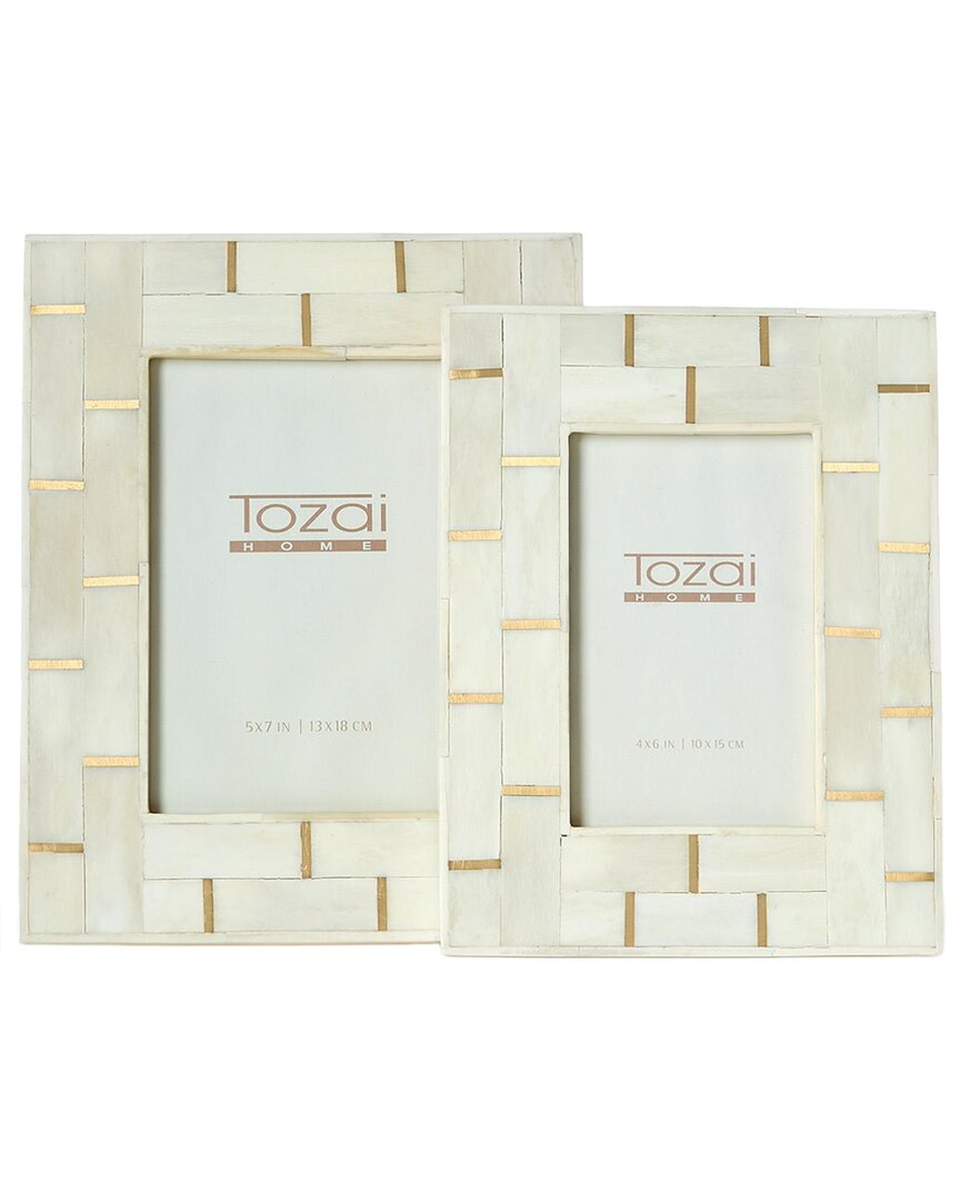Two's Company Set Of 2 Vendome Photo Frames With Brass Lines In White