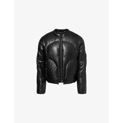 Mens Black Redline Quilted Faux-leather Down Jacket