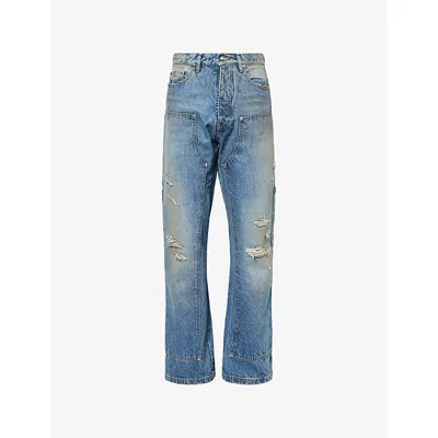 Mens Blue Stonewash Redline Distressed Denim Jeans