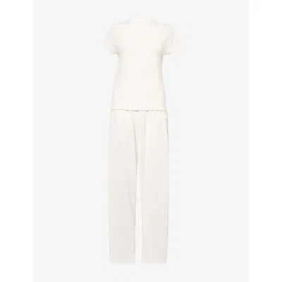 Womens White Short-sleeve Lightweight Slub-cotton Pyjamas