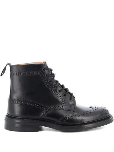 Rugged Black Leather Boots With Brogue Detailing In Multi