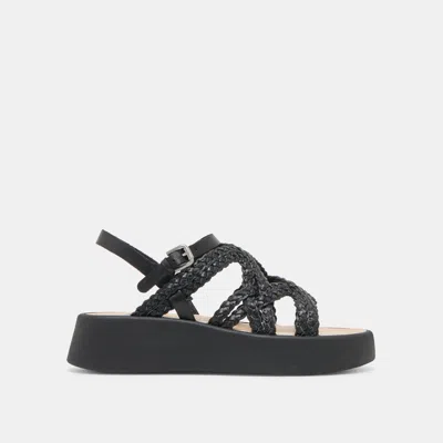 Selda Wide Sandals Natural Black Raffia - Re:vita In Neutral