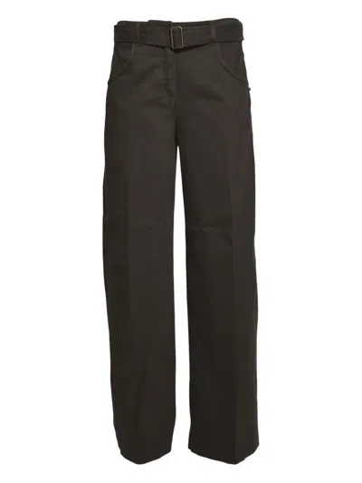 High-waisted Wide-leg Trousers With Flared Silhouette In Green