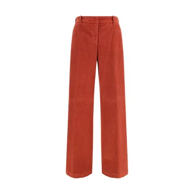 Corduroy Low-waist Pants With Flared Fit In Red