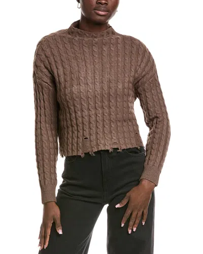 Turtleneck Cable Knit Cropped Sweater In Brown
