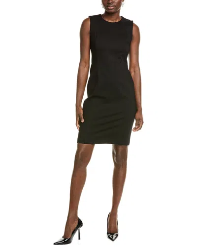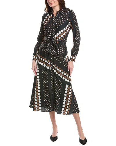 Mock Neck Flared Diamond Jacquard Midi Dress In Black