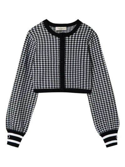 Kids' Houndstooth-pattern Knit Jacket In 白色