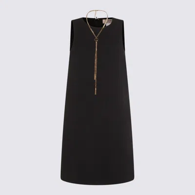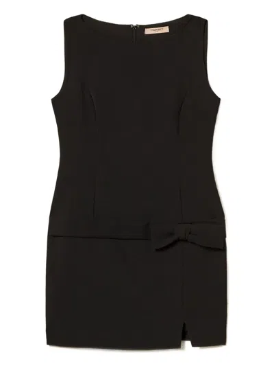 Twin-set Fitted Black Dress With Bow Detail In Brown