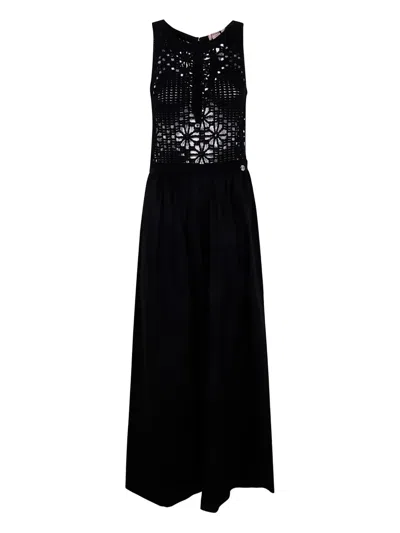 Twin-set Fitted Bodice Maxi Dress With Floral Lace Overlay In Black