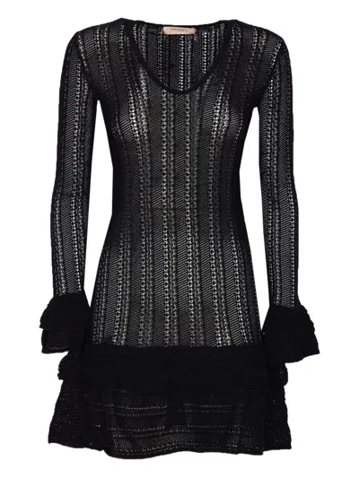 Twin-set Mini Dress With Textured Fabric And Floral Patterns In Black