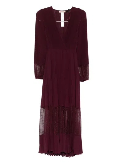 Twin-set Fitted Bodice Dress With Twist Detail And Flared Skirt In Purple