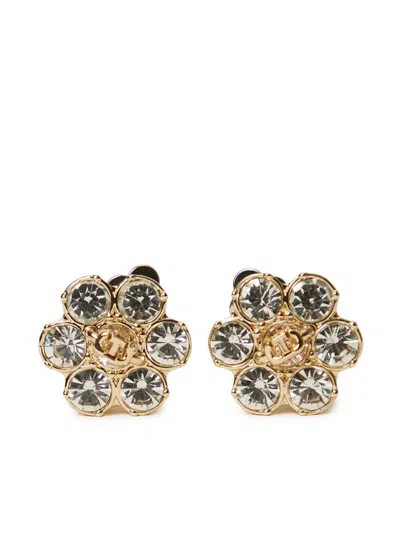 Oval-t Earrings With Rhinestones And Pearls In New Gold