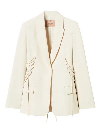 Beige Single-breasted Jacket With Notched Revers In Viscose Blend Stretch Woman In White