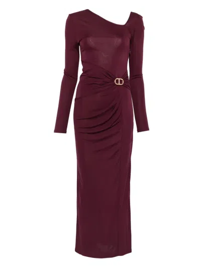 Twin-set Deep V-neck Maxi Dress With Flounced Hem In Purple