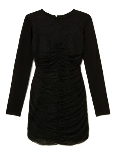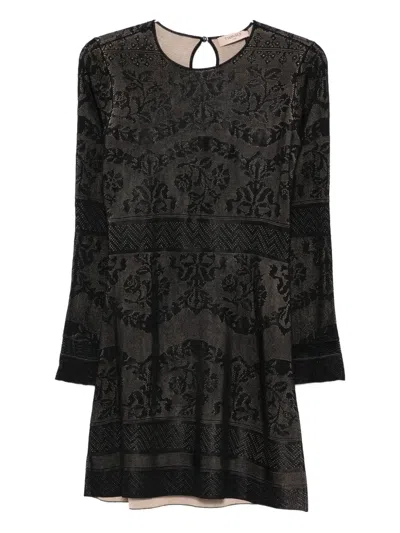 Twin-set Mini Dress With Textured Fabric And Floral Patterns In Black